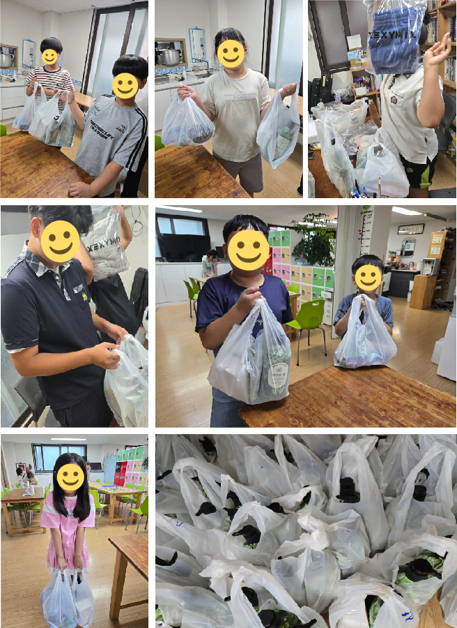센터에서 준비된 나눔 꾸러미를 아이들은 두 손 가득 들고 기쁜 표정을 감추지 못했습니다.