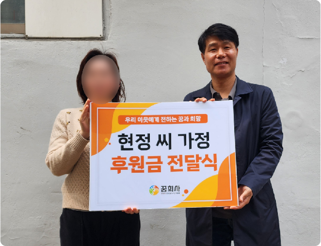 꿈희사에서는 현정씨 가족의 의료비 부담을 조금이나마 덜어드리고자 모금을 시작했습니다.