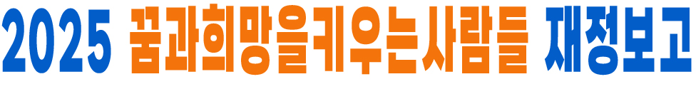 [꿈희사공지] 2025년도 꿈희사 재정 보고 자료입니다 등록일2026.03.26 조회수7 댓글 0댓글쓰기 댓글목록 등록된 댓글이 없습니다. 이전글 이전 글이 없습니다. 다음글 [꿈희사공지] 2026년도 정기 총회 공지 목록