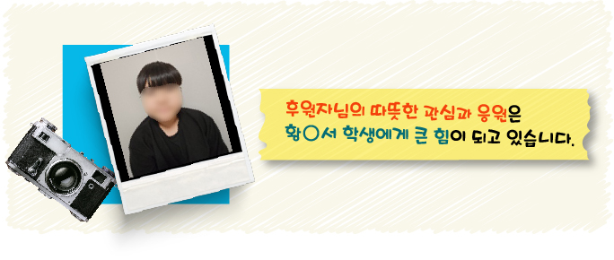 후원자님의 따뜻한 관심과 응원은 ○서 학생에게 큰 힘이 되고 있습니다.